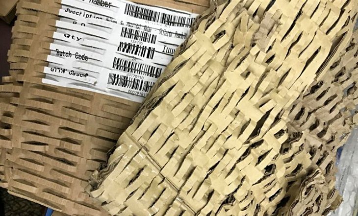 Cartón reciclado utilizado como alternativa al plástico de burbujas.