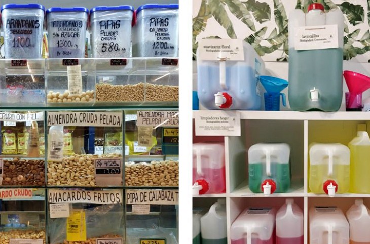- Imagen de portada: Cereales, arroces, pastas, frutos secos, especias, legumbres, azúcares… ¡Incluso bebidas! Cada vez más productos se venden a granel en muchos establecimientos. Puedes llevar tus propios envases reusables para comprar la cantidad que quieras y, en algunos casos, comprar tus envases reutilizables allí. ¿Por qué no ampliarlo a todos los supermercados? (Fotos de Verde a Granel, en Madrid y Yes Future, en Barcelona).