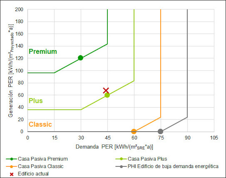 A las ventajas reconocidas de elevado confort interior y baja demanda energética de una vivienda Passivhaus Classic, en el caso de la categoría Plus hay que sumar la limitación de consumo de energía primaria renovable y la generación de energía fotovoltaica.