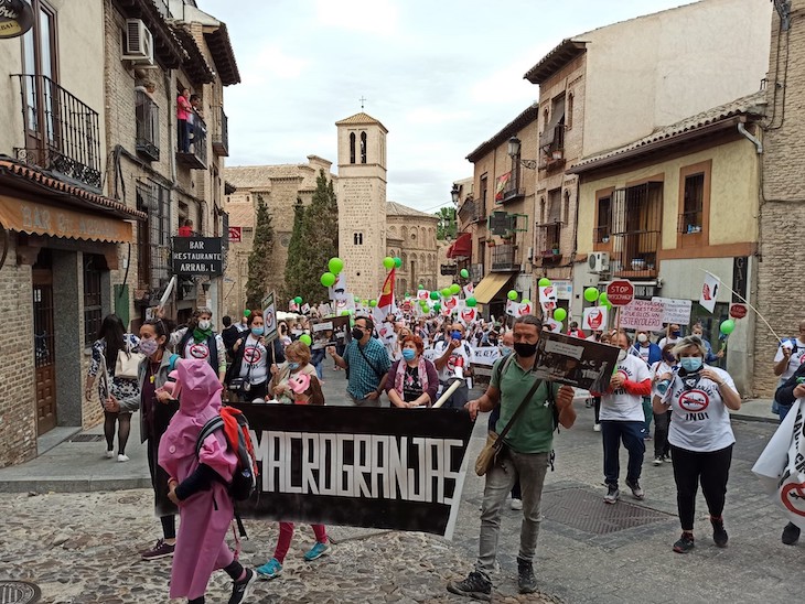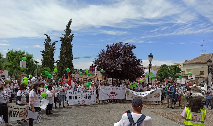 De nuevo pedimos una moratoria, ya lo hicimos precisamente aquí en Toledo, en la manifestación que convocamos el 10 de marzo de 2019. Cuatro días después, el 14 de marzo, la proposición fue rechazada tanto por PP como por PSOE en las Cortes regionales. Lo pedíamos por aquel entonces, y hoy lo hacemos de nuevo, dada la proliferación desmesurada de proyectos que se están tramitando en estos momentos en esta región, a añadir a los que ya están en funcionamiento.