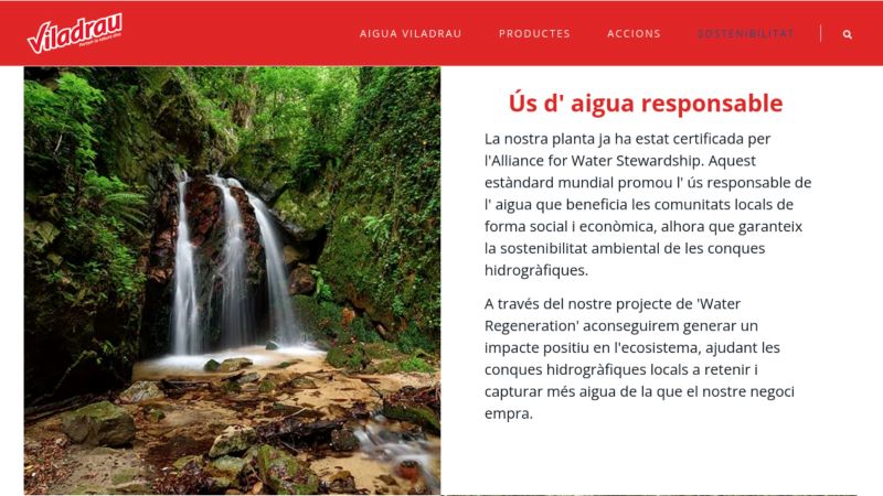 El greenwashing, se refiere a la manipulación de la percepción pública de una empresa mediante afirmaciones falsas o engañosas sobre su compromiso ambiental. En el caso de AGUAS DE VILADRAU, la empresa realiza, en su página web, muchas declaraciones ambientales que inducen al consumidor a pensar que se encuentra ante una empresa comprometida con el medio ambiente. O que incluso tiene un impacto positivo.