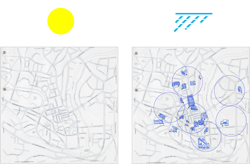Designed as a roll map, the fabric is water, and crumple proof allowing it to be easily stored in your bag with minimal packaging to combat any excess waste. The map is color coded to specific external environmental temperatures, which allows tourists, visitors and residents a like to have a new experience of bath.