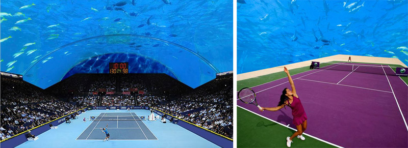 Una vez más llegan a nuestros oídos noticias sobre construcciones extravagante para Dubai. En está ocasión la propuesta es una cancha de tenis que estaría totalmente sumergida en las costas de Dubai y que permitiría ver una partido de tenis a la vez que contemplas el fondo submarino. Esta propuesta está cuestionada técnicamente, ¿Pero serán capaz de realizarla?