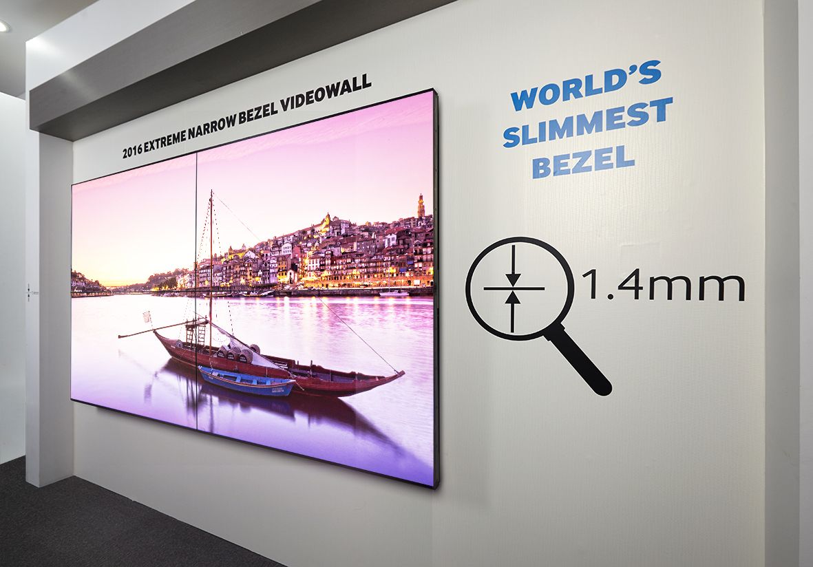 El display UHF-E de Samsung se caracteriza por un diseño ultrafino de marco a marco (0,9 mm en el marco superior e izquierdo; 0,5 mm en el marco inferior y derecho), y está equipado con los mismos componentes de durabilidad y presentación del color que sus predecesores.