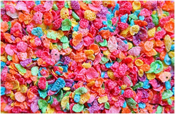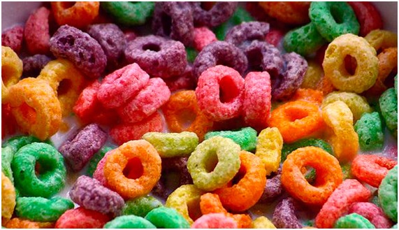 Muchos cereales utilizan colorantes artificiales de los que a veces solo mencionan una cantidad de números y letras que en realidad es la codificación del mismo, pero en la etiqueta en realidad no dan información fiable de qué es lo que realmente están poniéndole al desayuno de nuestros hijos.